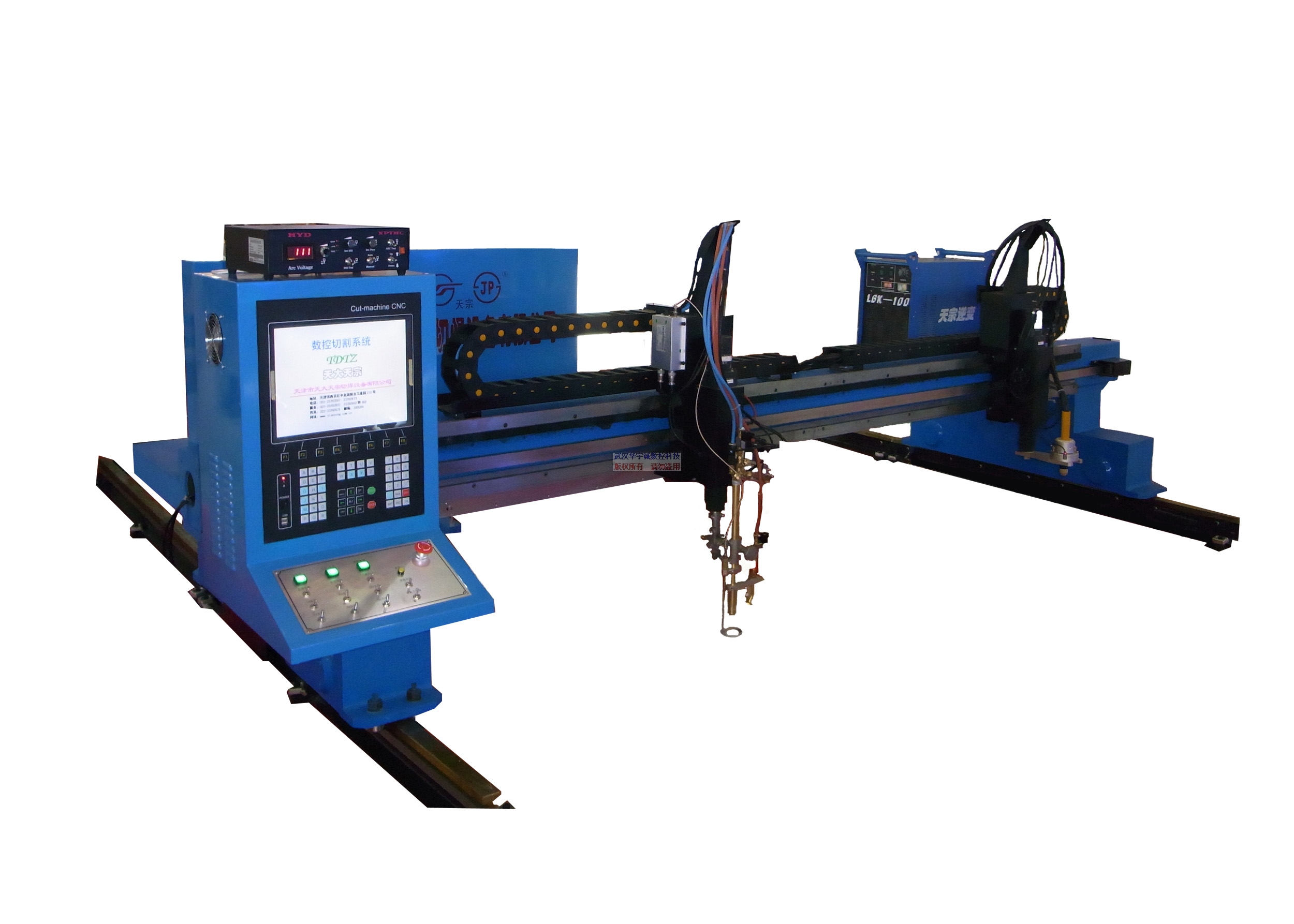 該型數控切割機為龍門式結構,是針對金屬板材下料的數控設備。能實現對各種金屬材料按任意圖形的下料切割。割口粗糙度可達25(▽3),切割后的割口面一般情況下不需要進行表面加工。具有自動化程度高、使用方便、精度高、可靠性高、操作、維護非常簡便等優點,廣泛適用于各種機械制造業中作金屬板材的下料切割。配10.4″VGA彩色液晶顯示器,系統帶自動診斷功能。橫向跨度有3m、4m、5m、6m等多種規格,均采用雙邊驅動,雙軸芯直線導軌,標配為橫向軌距4m,縱向軌長為6m,單火焰或單等離子切割方式,帶自動點火;也可增配成火焰與等離子兩用切割方式??v向導軌長度每節2m,可按用戶要求配置加長導軌及加寬橫梁跨距;還可根據用戶要求配置多把割炬或異型切割和抽條切割兩用。